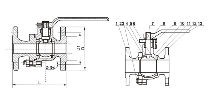 球閥的球體是浮動的,在介質(zhì)壓力作用下,球體能產(chǎn)生一定的位移并緊壓在出口端的密封面上,保證出口端密封。