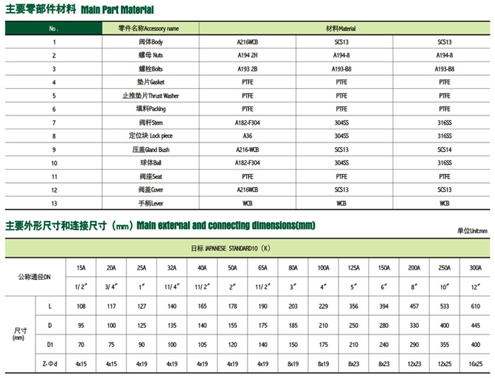 日標不銹鋼球閥結構圖及參數(shù)表
